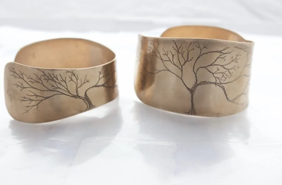 Learn the fundamental skills of jewelry making. Introduction to hammering, chasing, soldering, torches, flex shafts, polishers and more! We will begin with fabricating and soldering copper and move on to sterling silver. Learn to do basic sterling bezel setting of cabochons, found sea glass, stones etc. The sky is the limit! Bring ideas, or design your own piece from scratch! Individual instruction, close-up demonstrations, and hands-on experience.